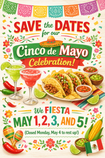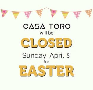 Casa Toro (both locations) is CLOSED Easter Sunday, April 5th.